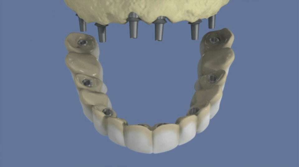 Maxillaire complet et traitement implantaire pour un bridge fixe scellé
